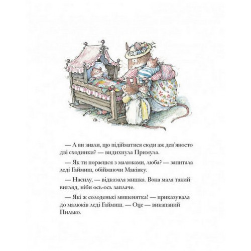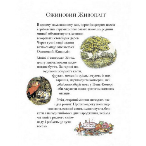 Читаріум Дітки Маківки. Ожиновий живопліт., Джилл Барклем 978-617-8093-09-9 Був початок літа в Ожиновому Живоплоті. Навколо млина все здавалося тихим і мирним, але всередині панував хаос. Немовлята Маківки плакали, Пилько шумів за працею, і хмари борошняного пилу наповнювали повітря. Це місце не підходило для виховання. Але що робити? Миші з Ожинового Живоплоту миттєво придумують план, і навіть Миросю вдається тримати його в таємниці від Маківки, щоб у неї був чудовий сюрприз у День Наймення немовлят.