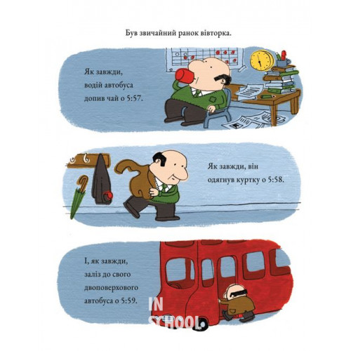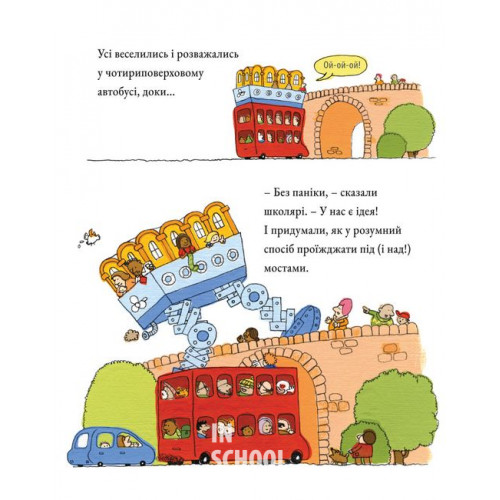 Дітям обов’язково сподобається величезний розворот з автобусом, який майстерно й зручно схований у книзі. Знайомство з ним стане додатковою грою, під час якої можна дізнатися багато нового.