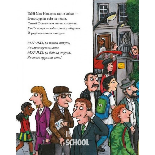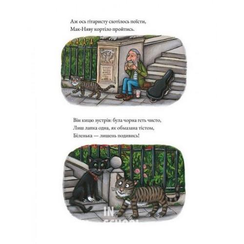 Читаріум Табі Мак-Няв., Джулія Дональдсон 978-617-7329-82-3 Сюжет книжки знайомить читачів з двома вірними друзями – музикантом і його котом Таббі. Пара надзвичайно полюбляє разом давати музикальні концерти та робить це з шаленим успіхом. Але одного разу стається біда! Музикант потрапляє до лікарні, а Таббі залишається сам на вулиці. Кіт шукає свого друга, але в результаті знаходить нових люблячих господарів. Що ж буде далі та чи зможуть старі друзі знову знайти один одного? Дізнавайтеся з книжки.