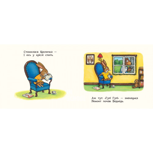 Читаріум Засиналка для Кролички., Джулія Дональдсон 978-617-8093-73-0 Кроличка втомилася і дуже хоче поспати. Вона шукає затишне місце, проте то слон гупає ногами, то лисиця щось майструє, то мишеня грає на барабані. Кожне віконце — нова спроба знайти тишу, а разом із нею — і омріяну дрімоту.