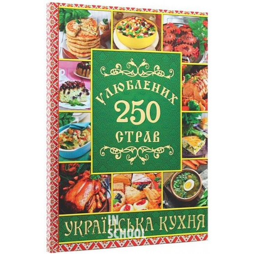 Видавництво "Глорія" 250 улюблених страв. Українська кухня. Зелена., Юлія Карпенко 978-617-536-845-9 Книга "250 улюблених страв. Українська кухня" побудована в дуже зручній формі: вона складається з трьох частин, кожна з яких - окрема тема, але якщо з'єднати ці теми, вийде чудове меню, і не тільки на щодень! А докладний опис і барвисті ілюстрації допоможуть вам без проблем та зайвих турбот приготувати страву.