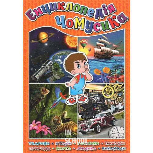 Видавництво "Глорія" Енциклопедія чомусика. Помаранчева 978-617-536-633-2 Енциклопедія чомусика Глорія. Дитячі запитання такі різноманітні, що відповісти на них батькам часом буває непросто. Але зовсім зрозуміло, що залишати запитання без відповіді не можна! Адже, ставлячи запитання, дитина хоче дізнатися про навколишній світ. І, одержуючи відповідь, вона стає розумнішою й дорослішою. Навчитися відповідати дітям доступно та правильно - це справжнє мистецтво.