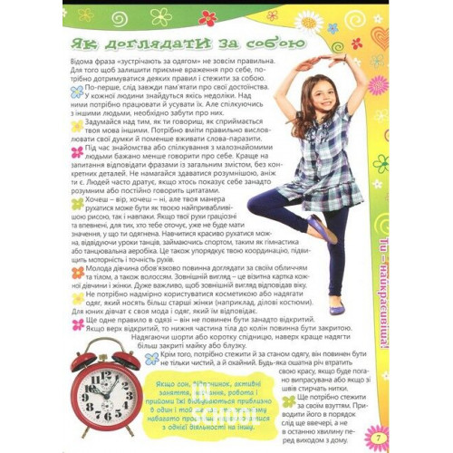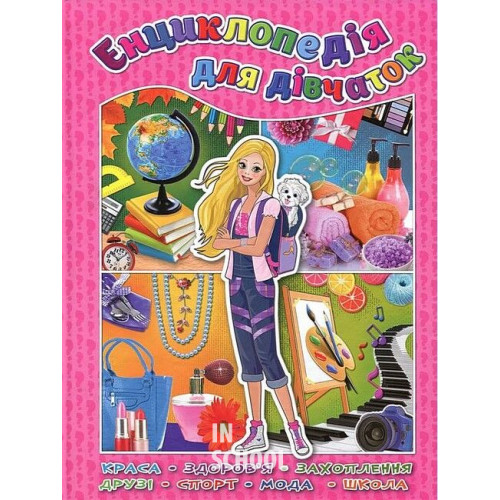 Видавництво "Глорія" Енциклопедія для дівчаток 978-617-536-634-9 Ця книга стане вірною помічницею на шляху твого дорослішання. Завдяки нашій книзі ти дізнаєшся, як навчитися бути вірним другом, цікавим співрозмовником і без конфліктів спілкуватися з ровесниками, батьками і вчителями.