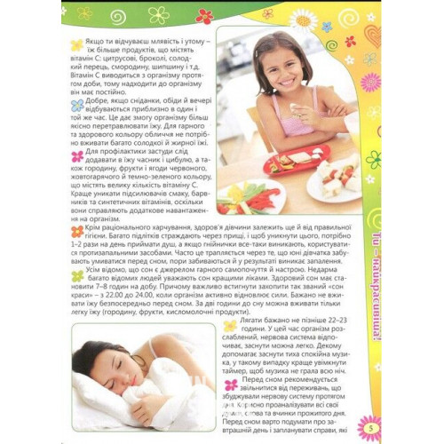 На сторінках книги ти знайдеш секрети краси і здоров'я. Навчишся правильно доглядати за своєю зовнішністю, за шкірою і волоссям, зберігати хорошу фізичну форму, а також стильно одягатися і бути самою привабливою і чарівною.