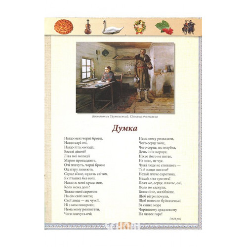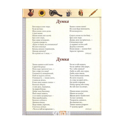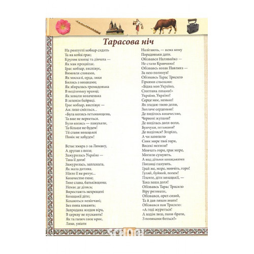 Видавництво "Глорія" Кобзар., Шевченко Т.Г. 978-617-536-463-5 Книга вже давно є одним із символів літератури нашої країни. В цьому немає нічого дивного, тому що її написав найвеличніший український письменник. У ній відображені ідеї, які панували в Україні у дев’ятнадцятому столітті. Автор являється символом боротьби України за незалежність. За свої вірші йому довелося заплатити велику ціну. Він зазнавав постійних утисків з боку Російської імперії. Неодноразово його відправляли в заслання. Однак це його не зламало. Навіть більше, все це зробило його тільки сильнішим.