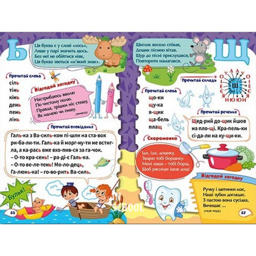 Видавництво "Глорія" Навчайся-розважайся. Букварик., С. Гелей 978-617-536-938-8 Цей чудовий «Букварик» ознайомить малюка з літерами, навчить читати та відкриэ для дитини дивовижний і цікавий світ знань. Віршики, загадки, скоромовки, оповідання та потішні малюнки допоможуть краще запам’ятати літери, а цікаві та веселі завдання перетворять заняття на захопливу гру. «Букварик» стане незамінним помічником під час підготовки вашої дитини до школи.