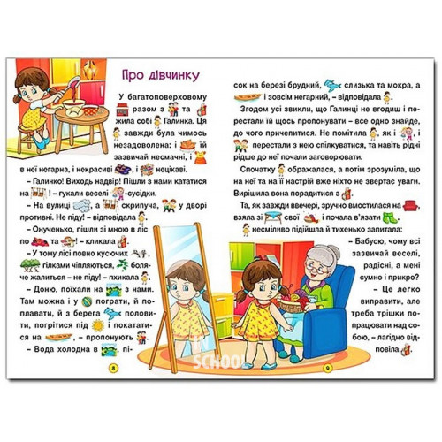 Видавництво "Глорія" Навчайся-розважайся. Добрі казки 978-617-8090-22-7 У цій книзі зібрані цікаві, повчальні й дійсно добрі казки, які змусять дитину замислитися, звернути увагу на свою поведінку та вчинки й зробити певні висновки. Малюнки, які в тексті в деяких місцях заміняють слова, дозволять дитині збагатити словниковий запас та зроблять процес читання більш цікавим.