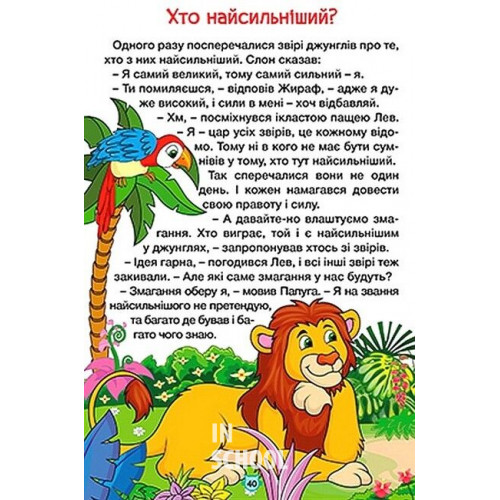 Видавництво "Глорія" Навчайся-розважайся. Казки джунглів 978-617-809-005-0 Ця книга прекрасно підійде вашій дитині для першого самостійного читання, адже вона містить невеличкі цікаві та повчальні казки для розвитку, які неодмінно їй сподобаються. Казки надруковані великими літерами та мають кольорові ілюстрації. Цю книгу можна взяти з собою в дорогу, на прогулянку і читати разом з друзями!