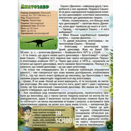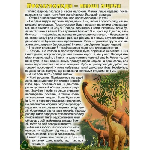 Видавництво "Глорія" Велика книга динозаврів у казках та оповіданнях., Юлія Карпенко 978-617-536-850-3 Ця унікальна книга від видавництва “Глорія” познайомить вашу дитину з 48 видами динозаврів. Інформація енциклопедії пропонується у вигляді невеликих оповідань і казок. Погодьтеся, що якщо знайомити дитину з давніми ящерами, то зрозумілою для неї мовою.