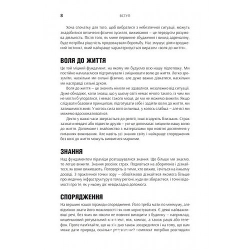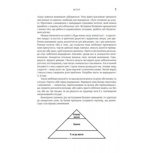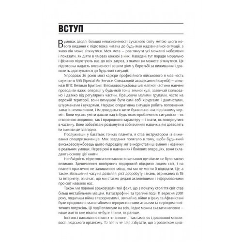 КМ-БУКС SAS. Довідник з виживання. - Джон Вайзман 978-966-948-768-1 "SAS: Найкращий посібник із виживання" заснований на методиках елітного британського спецпідрозділу SAS. Автор Джон "Лофті" Вайзман, колишній інструктор із виживання, ділиться не раз перевіреними стратегіями виживання в будь-яких умовах - від дикої природи різних кліматичних зон до міських катастроф і тероризму. У книзі вміщено детальні інструкції щодо будівництва укриття та самостійного виготовлення табірного спорядження, пояснення основ навігації та самооборони, першої допомоги й керування емоціями, щоб ті не відволікали вас від головної мети - вижити за будь-яку ціну.