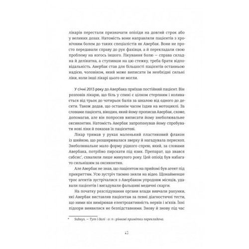 Книголав Продавці болю. Зліт і падіння опіоїдного стартапу. - Еван Г’юз 978-617-8439-83-5 Коли Джон Капур заснував компанію «Інсис терапютикс», то вже накопичив невеликий статок у фармацевтиці. Блискучий вчений-іммігрант, від природи наділений підприємницьким хистом, поклав собі за мету збагатитися на інноваційних ліках. Але існувала одна проблема: пацієнтів, які могли безперешкодно отримати рецепт на такий сильний і дорогий препарат, було не так багато. Тож він об’єднав навколо себе таких самих грошолюбів.