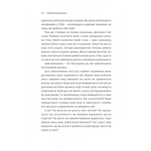 Книголав Серійний переможець: п'ять дій для створення вашого циклу успіху. - Лерри Вайдел 978-617-7563-31-9 Як знайті енергію і час для нових ідей? Чому одним з нас вдається приваблювати успіх, а іншим – ні? Що є запорукою досягнення надмети? Відомий фінансовий консультант Леррі Вайдел дає відповіді на ці запитання, використовуючи досвіди мільйонерів, спортсменів і супер-бізнесменів. Мета автора ? «запустити революцію дії, розкрити потенціал цілої армії людей, що готові мчати вперед до великих, видатних промов, які вони справді хочуть робити – і які їм судилося зробити».