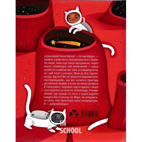 Видавництво "Книги - ХХІ" Космокоти. Марсіанські хроніки Мурка Мняуска., Юлія Ілюха 978-617-614-282-9 День, коли пухнастий котик Мурко побачив по телевізору відомого винахідника Ілона Маска, перевернув життя звичайного домашнього улюбленця догори дриґом. Відтепер він доброволець Мурко Мняуск, і його найбільша мрія — полетіти на Марс! Чи вдасться Муркові зустрітися з Ілоном Маском, щоб стати першим у світі котиком-марсонавтом, та чи відкриє йому свою головну таємницю червона планета?