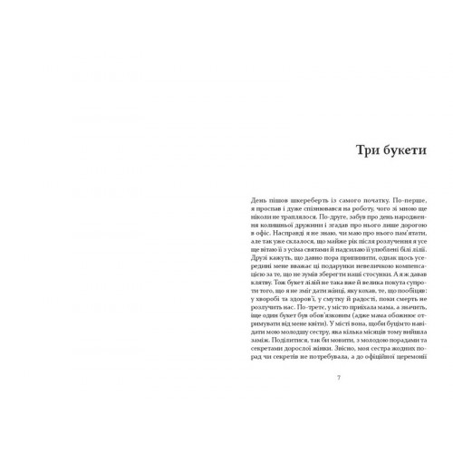 Видавництво "Книги - ХХІ" Квіти, карти та гіпноз., Марія Каменська 978-617-614-425-0 Джеремі дарує квіти й поважно ставиться до сказаних слів, Джеймс вираховує ризики та смакує грушеві пироги, Джейкоб проєктує будинки і мріє про нове чудове життя... Герої збірки вигадані й водночас справжні, чутливі та щирі. Трохи смішні, часом вразливі, подекуди наївні. Вони втрапляють у незручні ситуації, шукають із них вихід, а заразом і себе.