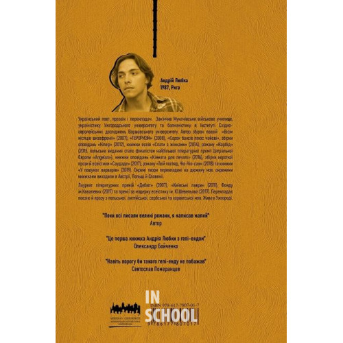 Видавництво "Книги - ХХІ" МАЛИЙ УКРАЇНСЬКИЙ РОМАН., Андрій Любка 978-617-7807-07-9 Молодий український поет прокидається з бодуна, і його осяює геніальна ідея: треба одружитися, щоб упорядкувати своє життя і завдяки цьому написати Великий Український Роман! Але одружитися з ким? Котру з минулих любовних пригод узяти з собою у світле літературно-сімейне майбутнє? Відповідь на це запитання герою допоможе знайти вірний друг і знаний рибак Паша, а також поліція і група кровожерних гуцулів. Фройд вдоволено потирав би руки, дізнавшись, що в українській літературі нарешті з’явився перший роман про трембіту. Так, поки що малий, але ж розмір – це не головне, правда?