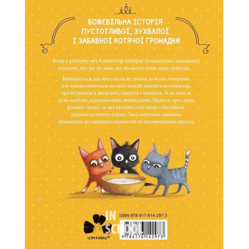 Видавництво "Книги - ХХІ" ВЕСЕЛІ ВИПАДКИ КОТЯЧОЇ ГРОМАДКИ., Аґнєшка Стельмашик 978-617-614-297-3 Ми знаємо, як Ви та Ваші дітки обожнюють котиків, саме тому ми продовжуємо видавати про цих милих пухнастиків книжечки. Представляємо польський дитячий бестселер "Веселі випадки котячої громадки". Уявіть собі, що в одному просторі живе вже три котиська і до них приносять ще одного новенького малючка. Чи сподобається це котикам, які вже прижилися в звичній обстановці лише їх трьох? Як розвиватимуться їхні цікавезні пригоди? А, може, вони все ж таки подружаться і стануть однією командою? Про це та інше, Ви можете дізнатися з нашої нової книжки. Ну дуууууууже муркотливе це чтиво, ніхто не може зупинитися в процесі читання, бо кожна сторінка цікавіша за попередню.