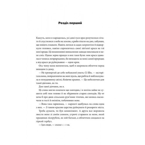 Ерудована, харизматична й безмежно красива Сі Ши мусить причарувати Ву. Але права на помилку вона не має. Якщо її викриють як зрадницю, Сі Ши занапастить обидва королівства. І втратить того, хто ладен віддати власне життя за один лише погляд її неземних очей.