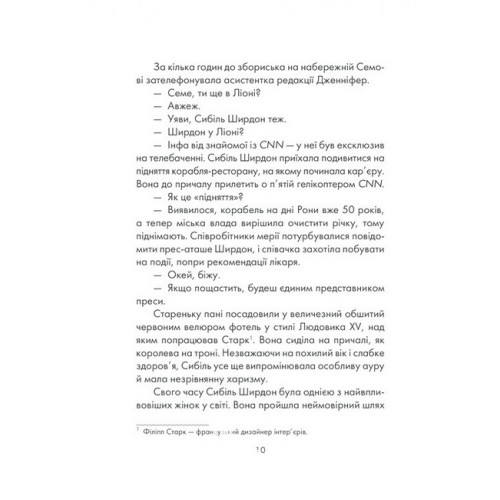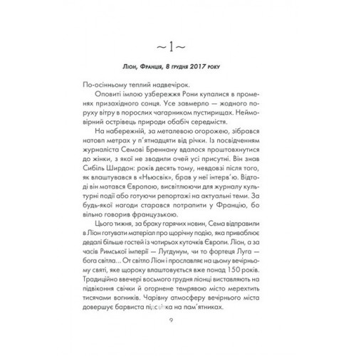 Життя Сибіль Ширдон почало руйнуватися, наче картковий будиночок. Начальник поставив перед фактом: лише десять днів, щоб зберегти робоче місце, інакше — звільнення. Того ж вечора коханий чоловік Сибіль сказав, що їхні стосунки вичерпали себе. Вона була немов затиснута в лещатах болю, страху та відчаю. Їй не залишалося нічого іншого, окрім як звернутися до... загадкового чоловіка, члена братства — таємного ордену. Кажуть, що він успадкував знання предків про функціонування людської психіки й здатен змінювати життя. Заманлива перспектива, авжеж? Сибіль вирішує ризикнути. Вона крокує надзвичайним шляхом пізнання себе й інших. Та чи стане їй сил розірвати всі кайдани, віднайти себе й схопити за крила омріяну волю — бути собою?.. замовити онлайнЯ обіцяю тобі волю. - Лоран Гунель Купити заразЯ обіцяю тобі волю. - Лоран Гунель Замовити з доставкоюЯ обіцяю тобі волю. - Лоран Гунель
