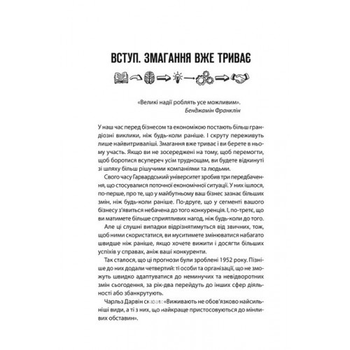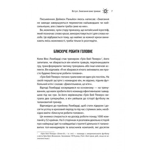На відміну від багатьох книжок з лідерства, що змальовують широку загальну картину, складні теорії та концепції, бестселер визнаного тренера з особистісного розвитку та бізнес-консультанта Брайана Трейсі цілком орієнтований на конкретну людину — керівника будь-якої бізнес-ланки. Незалежно від того, чи має він у підпорядкуванні десятки людей або ж десятки тисяч, основні його обов’язки залишаться незмінними — ставити перед собою цілі та впроваджувати інновації, розв’язувати проблеми й визначати пріоритети, стати прикладом для інших, надихати й мотивувати.