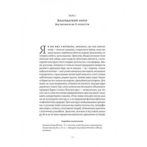 Видавництво "Лабораторія" Жовтий. Історія кольору (тверда)., Мішель Пастуро 978-617-8362-83-6 Художньо обрамлена й історично доведена одіссея жовтого кольору французького медієвіста Мішеля Пастуро описує тернистий шлях, який вдалося подолати всім відтінкам жовтого, щоб заполонити світ людини. Від перших натільних малюнків теплого кольору вохри до скромного місця у повсякденному житті Європи на межі XIX століття і безколірного існування в сучасності. Мандруючи Європою, Східною Азією, Індією, Африкою і Південною Америкою, жовтий став частиною мистецтва, релігії, моди, літератури й науки і водночас залишився найменш визнаним. Сучасна Європа не надає йому особливого значення, але так було не завжди. Увесь спектр його відтінків — від світлих і теплих до темних і сірчаних — гармонійно лягає на історію людства. Священний символізм часів античності й демонічний відтінок фальшивомонетників, лицарів, Юди й Люцифера. Імператорський колір Стародавнього Китаю й індійський символ щастя. Жовтий скрізь, і Пастуро висвітлює багатство його захопливих образів із вправністю митця.