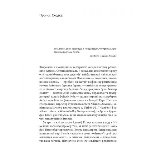 У цьому журналістському розслідуванні Давід де Йонг показує, як найбагатші бізнес-династії Німеччини накопичили незліченні гроші та владу, підтримуючи звірства Третього Райху. Вони захоплювали єврейський бізнес, залучали рабів і нарощували виробництво зброї для Вермахту в той час, коли Європа палала. Але найбільше шокує те, як швидко після війни Захід закрив на це очі.