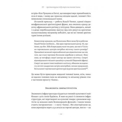 Книга «Проєкт «Ікона» не про споруди. Це подорож у світ емоцій, вражень і маніпуляцій міста, яке стає театром, де архітектура — це актори, а кожна нова п’єса — сценарій, продиктований економікою і владою.