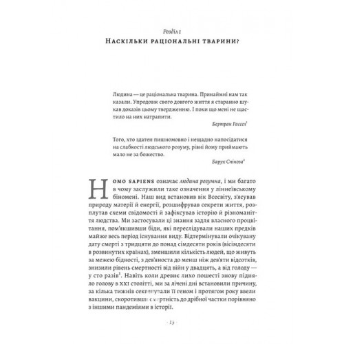 Ми боїмося змін, тому весь час робимо неправильні висновки, покладаючись на звички та інтуїцію. Та насправді раціональність є лише способом отримати те, чого ми хочемо. Саме вона веде нас до найкращого вибору та допомагає цьому світові не скотитися в хаос.