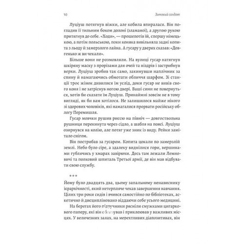 Від блиску бальних залів імператорського Відня до замерзлих лісів Східного фронту, від захаращених операційних до поля битви, де гримлять копита козацької кінноти. «Зимовий солдат» — це історія про війну і медицину, сім’ю і кохання, відданість справі і людський подвиг на тлі історичних потрясінь. А також про помилки, які ми робимо, і шанс їх спокутувати.