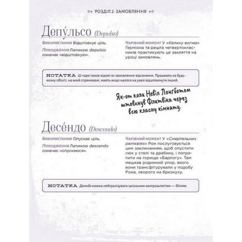 Видавництво "Мальопус" Найповніша Книга заклинань світу Гаррі Поттера. Неофіційне видання., MuggleNet 978-617-7756-97-1 «Неофіційна найповніша Книга заклинань світу Гаррі Поттера» пропонує глибокий аналіз понад 240 заклинань — вона містить усі магічні формули, згадані у книжках, фільмах та відеоіграх, і не лише їх! З кожного допису ви дізнаєтеся про походження формули заклинання, а також знайдете пам’ятний момент, у якому воно використовувалося. А ще додаткові нотатки й рухи паличкою, необхідні для всіх потенційних чаклунів та відьом.