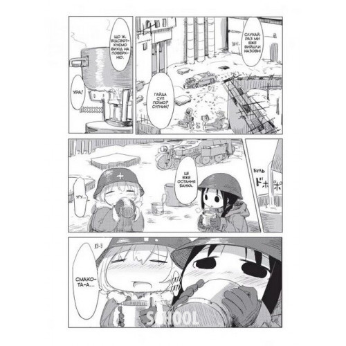 Видавництво "Мальопус" Остання подорож дівчат. Том 1., Цукумідзу 978-617-7756-67-4 Дівчата Чіто та Юурі — певно, останні вцілілі після війни, що перетворила людську цивілізацію на руїну. Не маючи більше власного дому, дівчата блукають містом на гусеничному мотоциклі «Кеттенкрад», постійно шукаючи ресурси задля виживання. Утім, попри безпросвітне майбутнє, дівчата однаково знаходять способи розважити себе впродовж цієї меланхолійної подорожі.