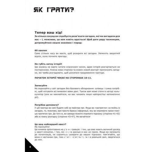 Мольфар комікс Escape Game. Місце Призначення. Земля., Клеманс Ґедан, Еммануель Ґрар 978-617-7885-36-7 А ця пригода вам до снаги? Переполох у відкритому космосі! Усі прилади на вашому космічному кораблі вийшли з ладу! Досліджуйте усі відсіки вашого корабля, щоб ви змогли виявити проблему, та повернутися на Землю. Але у вас лише 60 хвилин на те щоб ліквідувати проблему на кораблі. Аби досягнути успіху, вам доведеться спостерігати, діяти як у справжній квест-кімнаті, на все про все у вас 60 хвилин. Що таке гра «Знайди вихід»? Разом із іншими членами своєї команди, ви опиняєтесь у зачиненій тематичній кімнаті. Ваша мета — знайти вихід, обнишпоривши усю кімнату, розгадуючи таємниці, розшифровуючи коди… І все це — щонайбільше за 60 хвилин. Ця книжка, заснована на принципах квест-кімнати, дозволить вам — самостійно або в товаристві — погратися просто вдома!