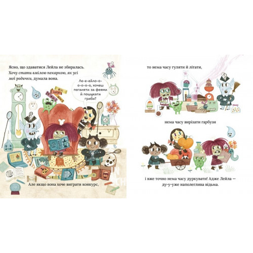 Моя книжкова полиця Лейла. Ідеальна відьма., Флавія З. Драґо 978-617-7781-41-6 Зустрічайте захопливу книжку-картинку від художниці Флавії З. Драґо про ідеальну відьмочку Лейлу, яка мешкає в пряниковому будиночку разом із сестрами та бабусею. Усі вони походять з давнього роду майстринь Темних мистецтв кондитерської справи. Рішуча відьмочка Лейла понад усе на світі хоче навчитися випікати тортики, щоб виграти на Відьмацькому торто-герці! Для цього їй доведеться облишити погоні за феями та пошуки грибів, а натомість треба буде вчитися та опановувати нову справу.