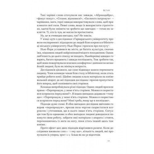 Зараз у ваших руках, безсумнівно, книжка про чарівні слова, що розкриє неочевидні наукові принципи того, як працюють фрази з такими словами і як за допомогою них переконувати, поглиблювати стосунки й бути успішнішими.
