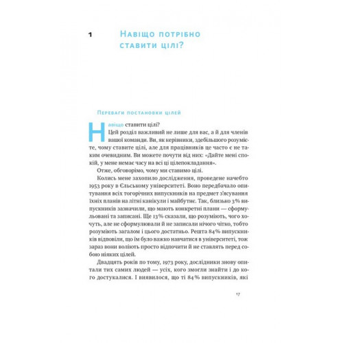 У цій книжці автор крок за кроком пояснює, якими є переваги цілепокладання, які нові підходи до планування застосовують у сучасному світі, а також розповідає про основні принципи, структуру й інструменти OKR. Особливу увагу приділено до впровадження методу на практиці й опису типових помилок. Метод OKR дасть підприємцям змогу зосередитися на найважливішому й отримати більше за менший проміжок часу.