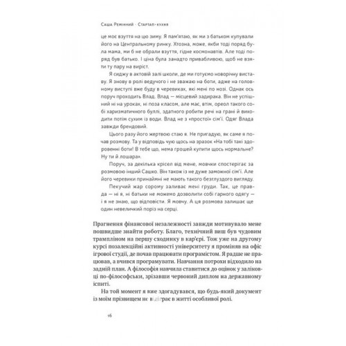 Ця книжка — написаний людською мовою посібник про те, як створити технологічний стартап саме в Україні, в наших повсякденних реаліях. Це особиста історія автора, де всі прийоми та приклади оживають. Це коментарі від інших засновників стартапів про їхній досвід. Автор має на меті також поділитись з вами тим, про що не часто пишуть у книгах. Про особисту мотивацію. Про внутрішні переживання. Про конфлікти між колегами. Про те, що ви могли би почути за чашкою запашного чаю у відвертій розмові на його кухні — Стартап-кухні.