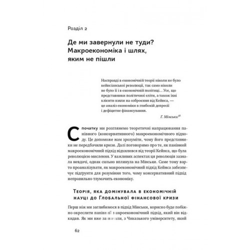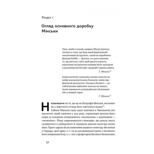 Наш Формат Я ж вам казав! Сучасна економіка за Гайманом Мінськи., Рендал Рей 978-617-7552-34-4 Мабуть, жоден економіст не отримав такого визнання внаслідок глобальної фінансової кризи, як Гайман Мінськи. Хоч і кілька дослідників били на сполох про можливість кризи іще на початку 2000-х, — застереження Мінськи з’явилися на півстоліття раніше. Завдяки застосуванню альтернативного підходу до економічної теорії він побачив вразливість фінансової системи тоді, коли мейнстрімні економісти ще не відчували жодної загрози. Основна ідея Мінськи полягає в тому, що «стабільність дестабілізує». Щойно система досягає рівноваги, поведінка людей, економічна політика та й власне бізнес — усе починає змінюватися. Унаслідок цього система стає слабкою та нестабільною.