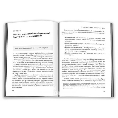 КМ-БУКС Мистецтво статистики. Прийняття аргументованих рішень на основі даних. - Девід Шпігельгальтер 978-966-948-696-7 Статистика відіграє важливу роль у нашому науковому розумінні світу протягом століть, проте всі ми знаємо, якими сенсаційними можуть бути статистичні твердження, надто у засобах масової інформації. Автор книги «Мистецтво статистики» знайомить читачів з основними принципами, які необхідні для вилучення знань із даних. Він показує, як статистика може допомогти нам визначити найщасливішого пасажира «Титаніка», чи можна було раніше спіймати серійного вбивцю Гарольда Шіпмана, скільки дерев на планеті, чому в старих великі вуха. Шпігельгальтер дає відповіді на ці та багато інших питань, що можна зробити лише за допомогою статистичної науки.