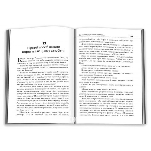 КМ-БУКС Як насолоджуватися життям і отримувати задоволення від роботи. - Дейл Карнегі 978-617-8144-87-6 Якщо ви відчуєте силу трансформації після прочитання цієї книги, обов'язково зверніть увагу на інші бестселери автора, такі як "Як здобувати друзів і впливати на людей" та "Як подолати неспокій і почати жити". Ці праці складають ідеальний трикутник особистого зростання. Також поціновувачам подібної літератури можуть сподобатися книги Стівена Кові або Віктора Франкла за їхню глибину та життєствердну філософію. "Як насолоджуватися життям і отримувати задоволення від роботи" — це інвестиція у ваш душевний спокій, яка окупиться вже з першої сторінки.