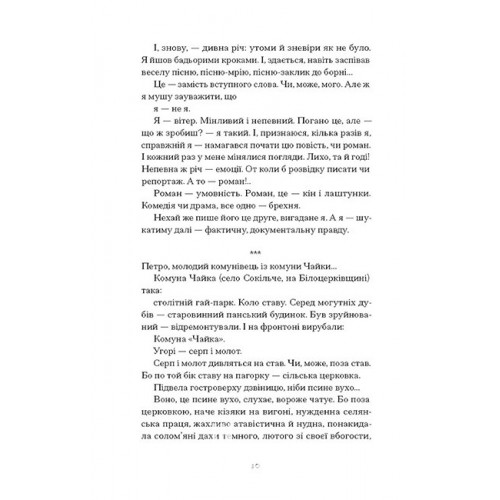 Видавництво "Ще одну сторінку" Голяндія., Дмитро Бузько 978-617-522-569-1 У цьому «лівому романі» окреслено життя сільської комуни, яка є і мікромоделлю сім’ї-родини, і макросвіту — суспільства загалом, із перипетіями та викликами, які регулярно постають перед соціумом: взаємини між бідними й багатими, паралелі між митцями й трудівниками, питання совісті й честі, а також «полові питання», які автор відкрито озвучує і подає варіанти вирішення, що як на 1929 рік звучить доволі відверто. У книзі вміщено нарис Д. Бузька про початки українського кінематографу, оскільки письменник був редактором ВУФКУ й автором кількох кіносценаріїв, зокрема й одного з перших українських фільмів «Лісовий звір» (1926), який написав за мотивами власної автобіографічної повісті.