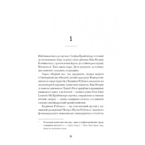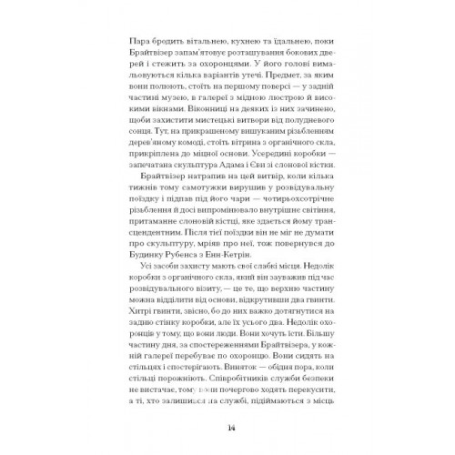Видавництво "Ще одну сторінку" Мистецький злодій. Правдива історія про любов, злочини і небезпечну одержимість., Майкл Фінкель 978-617-522-253-9 Століттями твори мистецтва викрадали незліченними способами, але ніхто не досяг у цьому такого успіху, як майстерний злодій Стефан Брайтвізер. За більш ніж 200 пограбувань протягом майже десяти років — у музеях і церквах по всій Європі — Брайтвізер зі своєю дівчиною вкрав понад 300 об’єктів мистецтва, аж поки його спіймали. Майкл Фінкель переносить нас у дивний і сповнений краси світ мистецького злодія. На відміну від решти, він ніколи не крав заради грошей, а зберігав усі скарби вдома, де міг милуватися ними досхочу. Завдяки безмежній любові до мистецтва і здатності оцінювати практично будь-яку систему безпеки, Брайтвізер зумів здійснити неймовірну кількість зухвалих крадіжок. Проте ці дивні таланти породили дедалі більше нехтування безпекою і нестримну жагу поповнювати колекцію безкінечно, аж поки за власним его крадій не побачив пастки. Це реальна історія про мистецтво, злочини та невгамовне бажання володіти красою за всяку ціну.