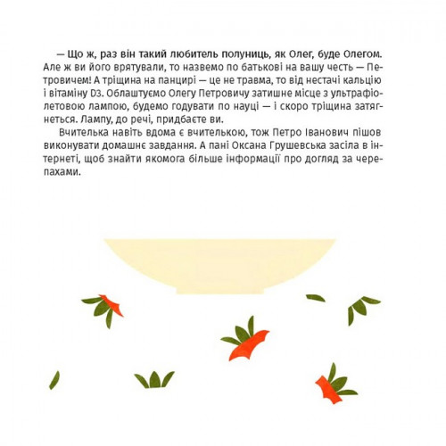 Видавництво "Ще одну сторінку" Панцир, лапи й крила пані Оксани., Валентина Захабура 978-617-522-268-3 Пані Оксана живе звичайним розміреним життям, варить варення з шишок, ходить на улюблену роботу, аж тут... На її голову починають звалюватися різні тварини: черепах Олег Петрович, шпорцеві жабки Жабокряки Мар’яновичі, і це далеко не всі! І як їм усім дати раду, коли світ накриває хвиля солодкого дондурма-вірусу, а колега просить прихистити справжнісіньку Панду?