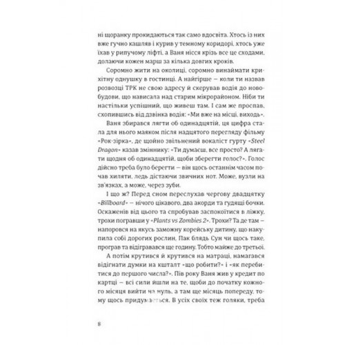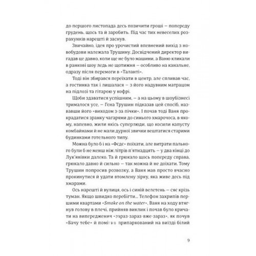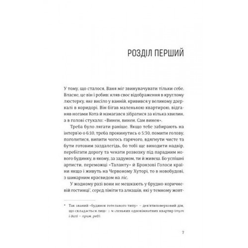 Ця книжка — про життя за лаштунками шоубізнесу і про життя після шоу. Реальність диктує свої умови, в яких складно вижити, самореалізуватись, зберегти взаємини, відрізнити фальш від правди, не зрадити себе, а ще — зробити вибір. Бо цей вибір може бути дуже несподіваним.
