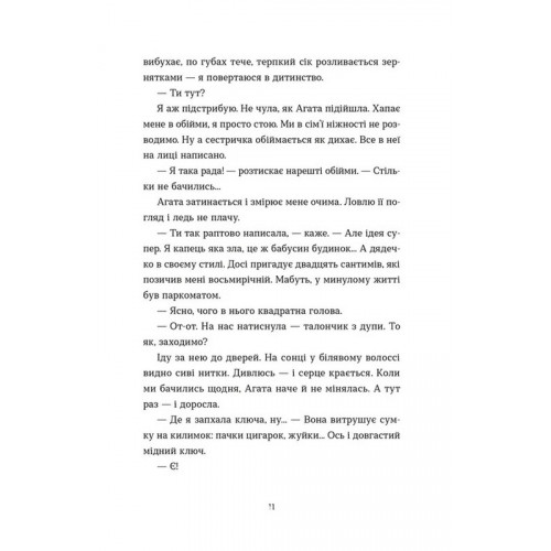 Видавництво Старого Лева Хороше життя. - Віржіні Ґрімальді 978-966-448-624-5 Емма та Агата — сестри. Рідні, але дуже різні. Життя розвело їх на п’ять років, та цього літа вони зустрічаються у будинку на узбережжі. Після смерті улюбленої бабусі дім їхнього дитинства наповнений спогадами та ностальгією. У сестер є тиждень, щоб розповісти одна одній усе і надолужити час, проведений порізно. Тиждень для примирення з минулим, пошуки взаєморозуміння, прощень і надії, — останній шанс віднайти те, що здавалося втраченим назавжди.