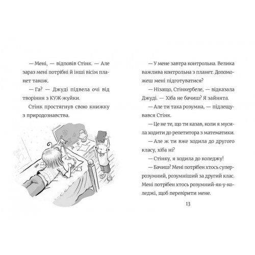 Видавництво Старого Лева Стінк: Супергерой Сонячної системи. - 978-966-448-326-8 Колись — ну, насправді не так і давно, адже було це вже після того, як вимерли динозаври, та й батьки ваші ще це пам’ятають — Плутон вважали однією з дев’яти планет Сонячної системи. А потім зібралися мудрі науковці й вирішили, що він замалий. Звісно, Плутон так і лишився в Сонячній системі. Але відтоді його стали називати карликовою планетою. Хоча й досі не всі вчені із цим згодні.