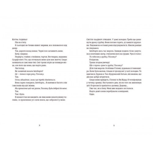 Видавництво Старого Лева Толлак Інґеборґи. - Туре Ренберґ 978-966-448-034-2 Толлак — чоловік, повністю зітканий із протиріч: гордий, лютий, сповнений злості, пристрасний та меланхолійний. Він день за днем проклинає світ, який давним-давно втратив для нього сенс. І день за днем подумки розмовляє з дружиною Інґеборґою, яка загадково зникла багато років тому.