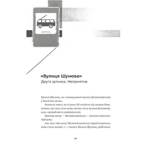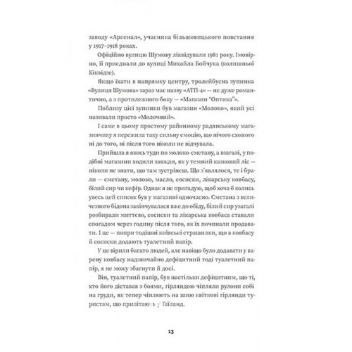 Видавництво Старого Лева Тролейбус номер 15. Подорож у близьке минуле. - Наталя Діденко 978-966-448-444-9 Щодня тролейбус їде вулицями Києва за своїм маршрутом. Кожна зупинка — це окрема розповідь, і йдеться не лише про історію київських вулиць та локацій. Книжка спогадів Наталки Діденко дає можливість зануритися в атмосферу Києва через призму особистих історій авторки. Ці прості й відверті, щемкі, теплі, сповнені доброго гумору розповіді немов переносять нас у минуле, дають можливість пригадати студентські роки й час дорослішання, зустрічі з друзями, маленькі радощі й великі досягнення. З часом змінюються назви вулиць, міняється темпоритм життя, врешті змінюємося ми самі, а тролейбус їде тим самим маршрутом і запрошує нас у мандрівку — в подорож у близьке минуле.