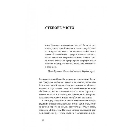 На сторінках цієї книжки постає історія Дніпра в її тяглості — від перших згадок і до сучасності. Фортеця Кодак й імперські амбіції, промисловий бум та багатокультурність, Дмитро Яворницький і початки українського кінематографа. Калейдоскопічні зміни влади у 1919 році й Нестор Махно, Підмогильний і «Собор» Гончара, ракети й космос, майже тридцятирічна заборона на приїзд іноземців і каральна психіатрія.