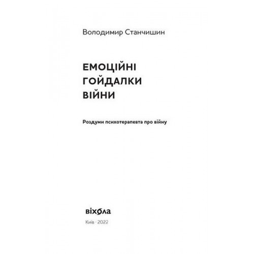 Віхола Емоційні гойдалки війни. Роздуми психотерапевта про війну., Володимир Станчишин 978-617-7960-71-2 Зараз немає життя, яке не змінилося би повністю з початком повномасштабної війни в Україні. Але змінилося не лише наше повсякдення, а й емоційні реакції. Усе — від страху, тривоги та злості до почуття провини й смутку — проявляється настільки насичено, що інколи складно уявити, як узагалі можна дати раду цим емоціям. Бо якщо раніше в нас були певні зразки того, як поводитися в кожній ситуації, як реагувати, то зараз усі ці зразки поламані, а в голові — суцільний хаос; щодня ми бачимо речі, яких не мало б існувати в цивілізованому світі.