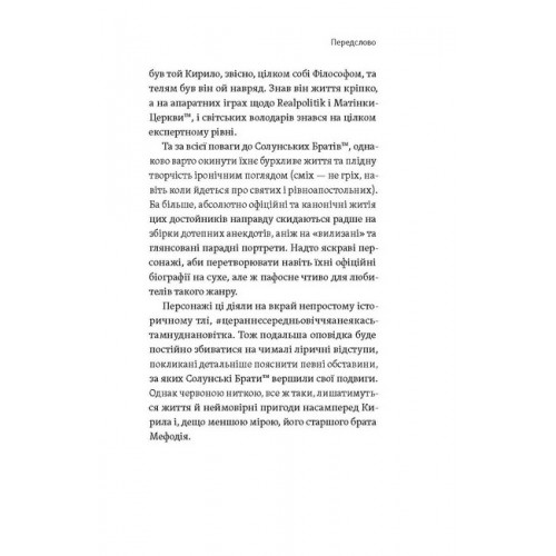 Віхола Кирило і Мефодій. Політичні інтригани словесності., Євген Синиця 978-617-8178-67-3 Ця книжка цілком могла називатися «Життя та неймовірні пригоди Кирила» і, дещо меншою мірою, «його старшого брата Мефодія». Навіть офіційні й канонічні житія цих достойників скидаються радше на збірки дотепних історій, аніж на глянсовані портрети.