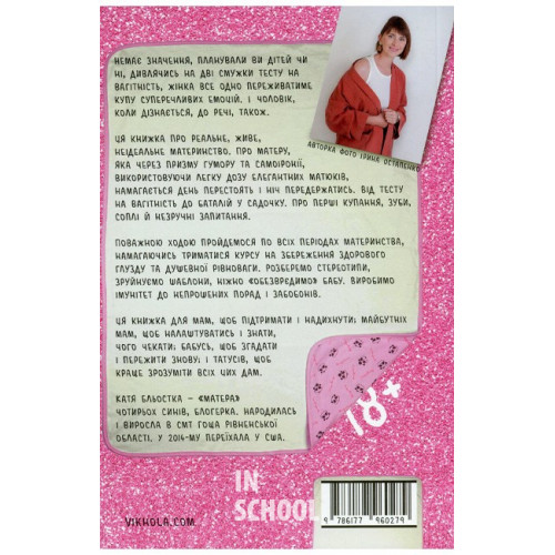 Віхола Матера вам не наймичка, або Чому діти це... Прекрасно., Катя Бльостка 978-617-7960-27-9 Ця книжка про реальне, живе, неідеальне материнство. Про матеру, яка через призму гумору та самоіронії, використовуючи легку дозу елегантних матюків, намагається день перестоять і ніч передержатись. Від тесту на вагітність до баталій у садочку. Про перші купання, зуби, соплі й незручні запитання.